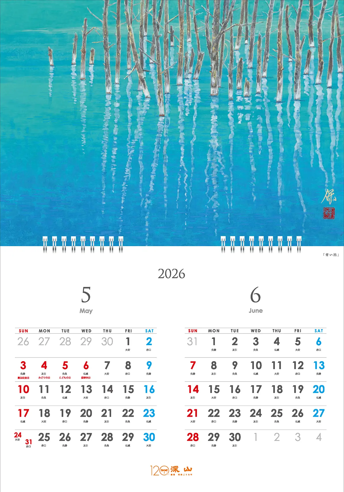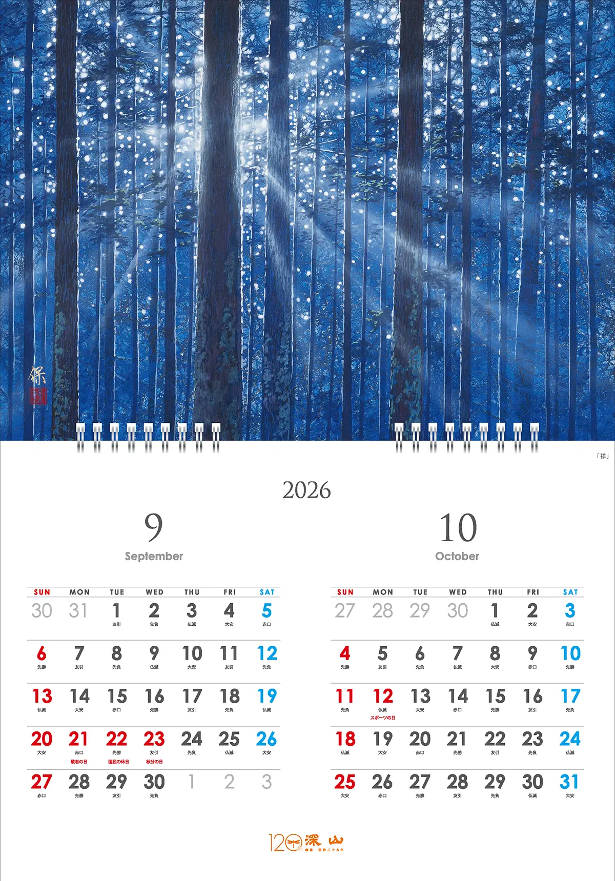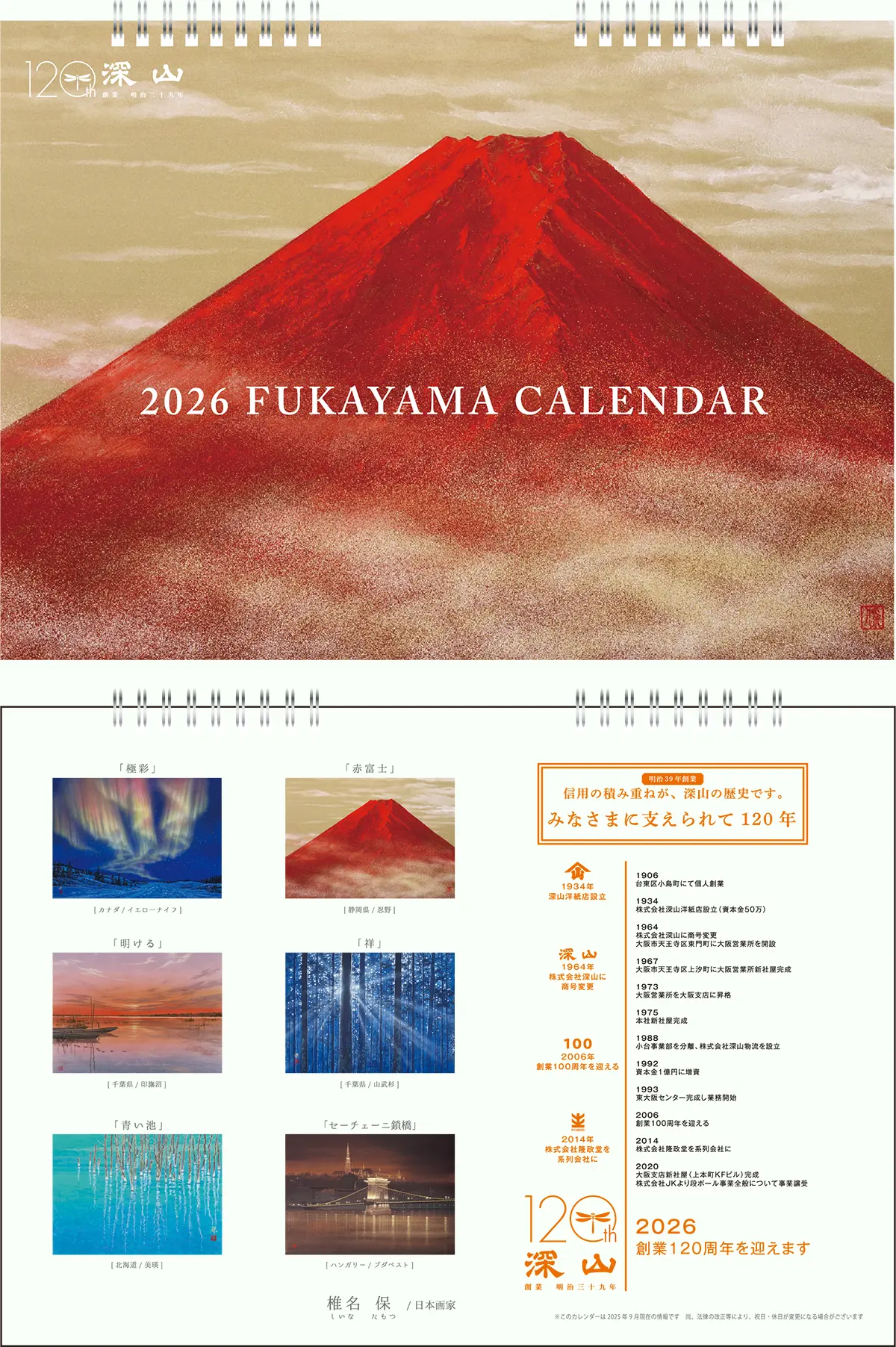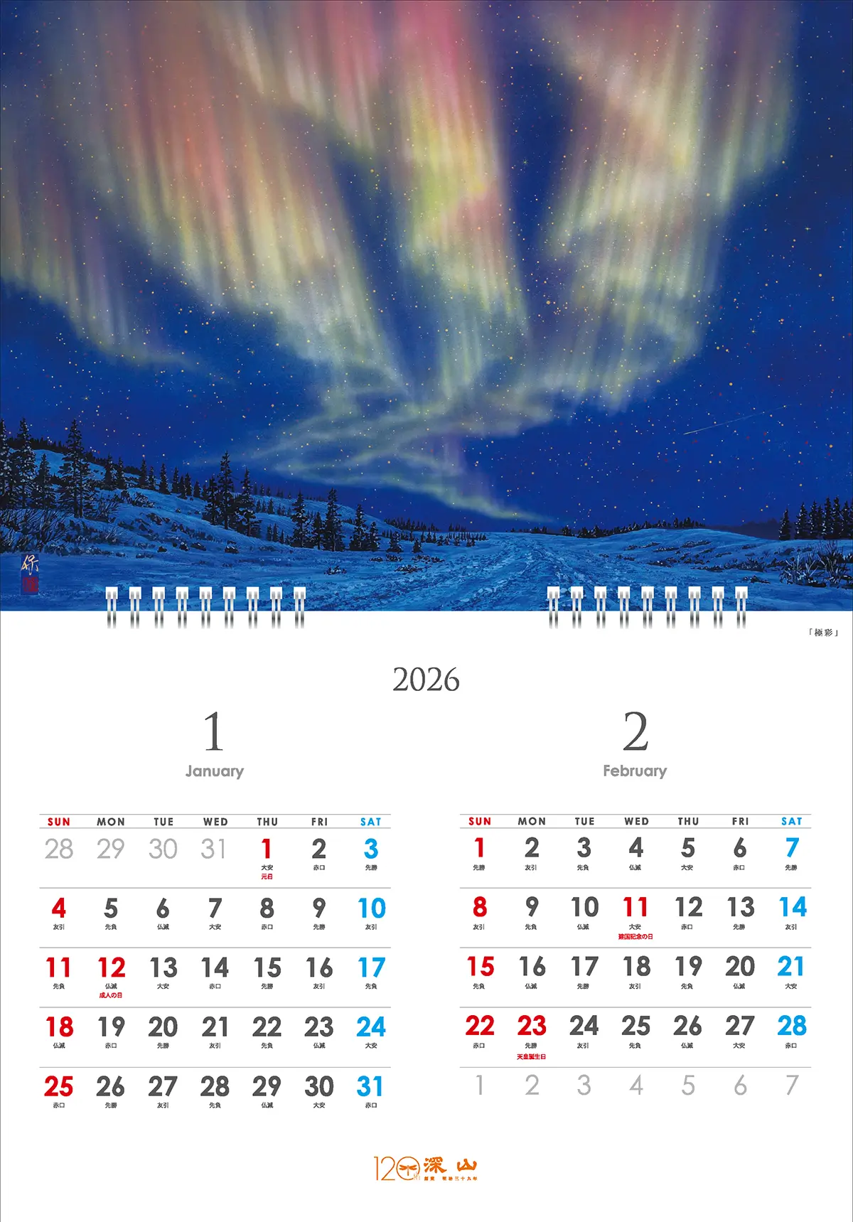 毎年、(株)隆政堂とタッグを組み、様々なコンセプトで制作している紙を扱う私たちの“好奇心”と“チャレンジ”を詰め込んだ深山のノベルティ卓上カレンダー。今年は普段芯材や台紙に使われる「地券紙」を使用、月曜始まり・午前・午後の予定を分けられるライン入り。
