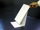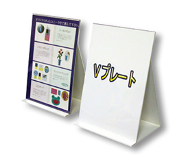 Vプレートは、たたんだ状態から先端をつまんで起こすだけでカウンター用の告知板となります。
