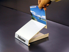 Vステージは、たたんだ状態より店頭にて組み立てるとカウンター用商品となります。